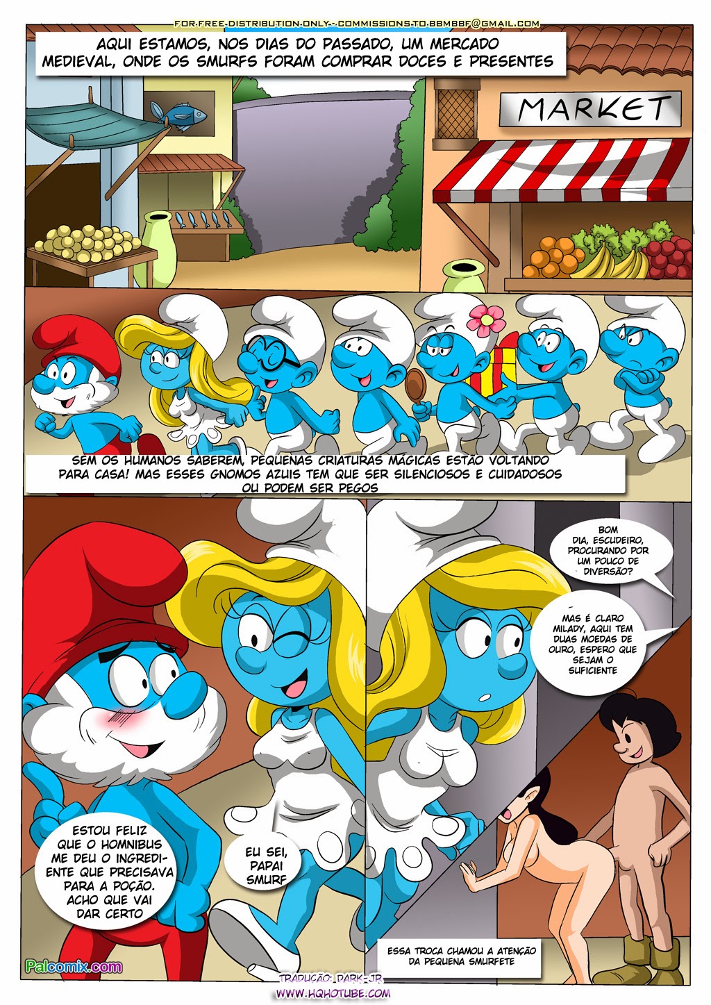 Smurfette transando com todo mundo na Aldeia dos Smurfs